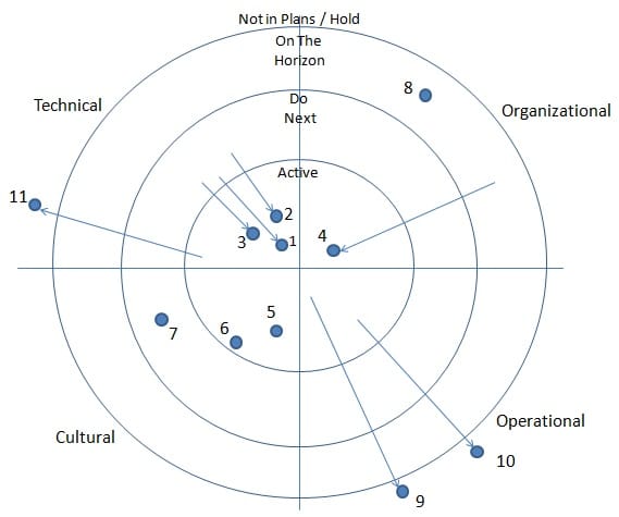- Will you use “What’s on your Radar?” Think of a bull’s eye dart board with 4 pie sections. The center of the dart board symbolizes those targets that are the most priority. The pie sections refer to categories. By pinpointing where different aspects fall within the target, students can get a visual of what’s really important and what to tackle first.