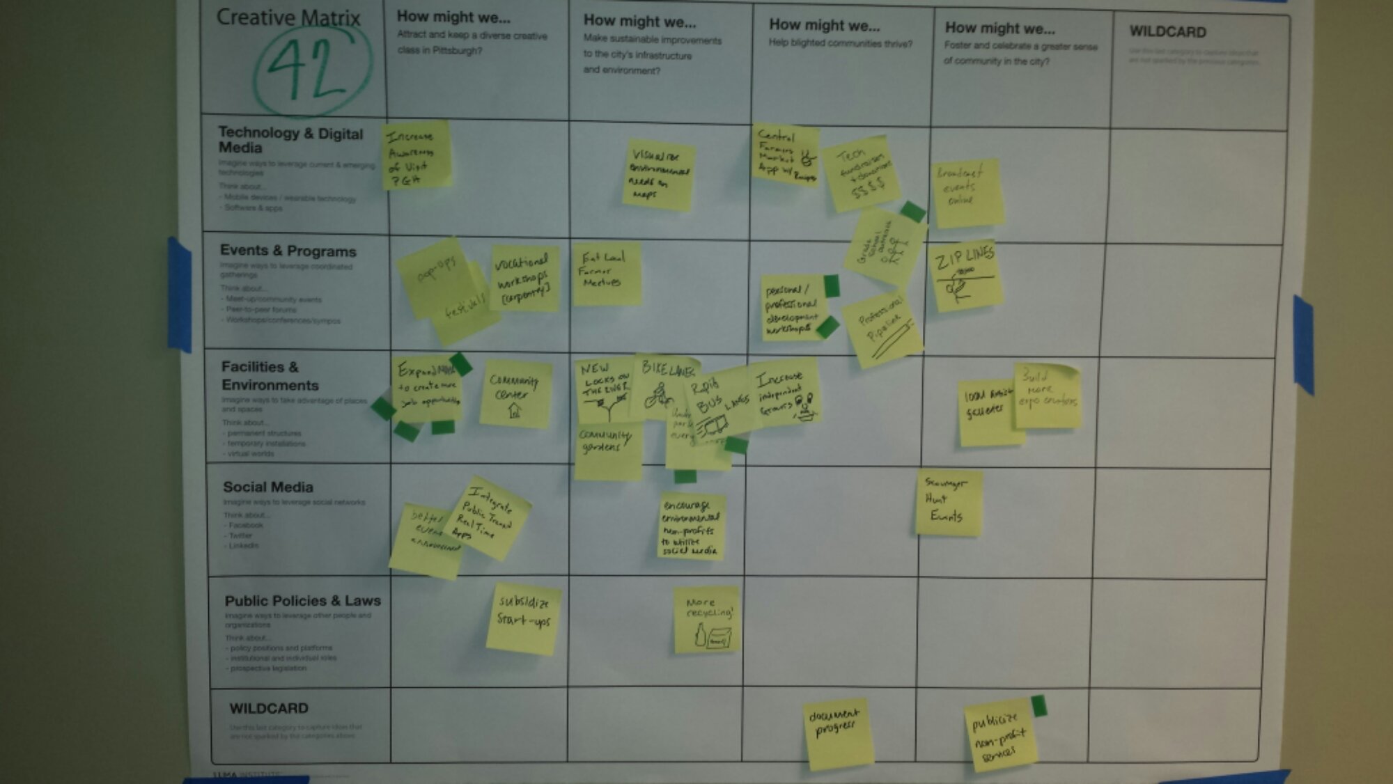 - Will you use "Creative Matrix?" At the top of the matrix are your categories; things you might want to tackle or problems that you might want to solve. Include a last column called “wild card” for things you didn’t think of at first. The Left side is how you might tackle the problems in broad categories like “Products to help solve the problem,” “services to help solve the problem,” or “events to help solve the problem.” The bottom row is another wild card for unforeseen ideas. Using sticky notes, students can post their ideas in the appropriate sections.